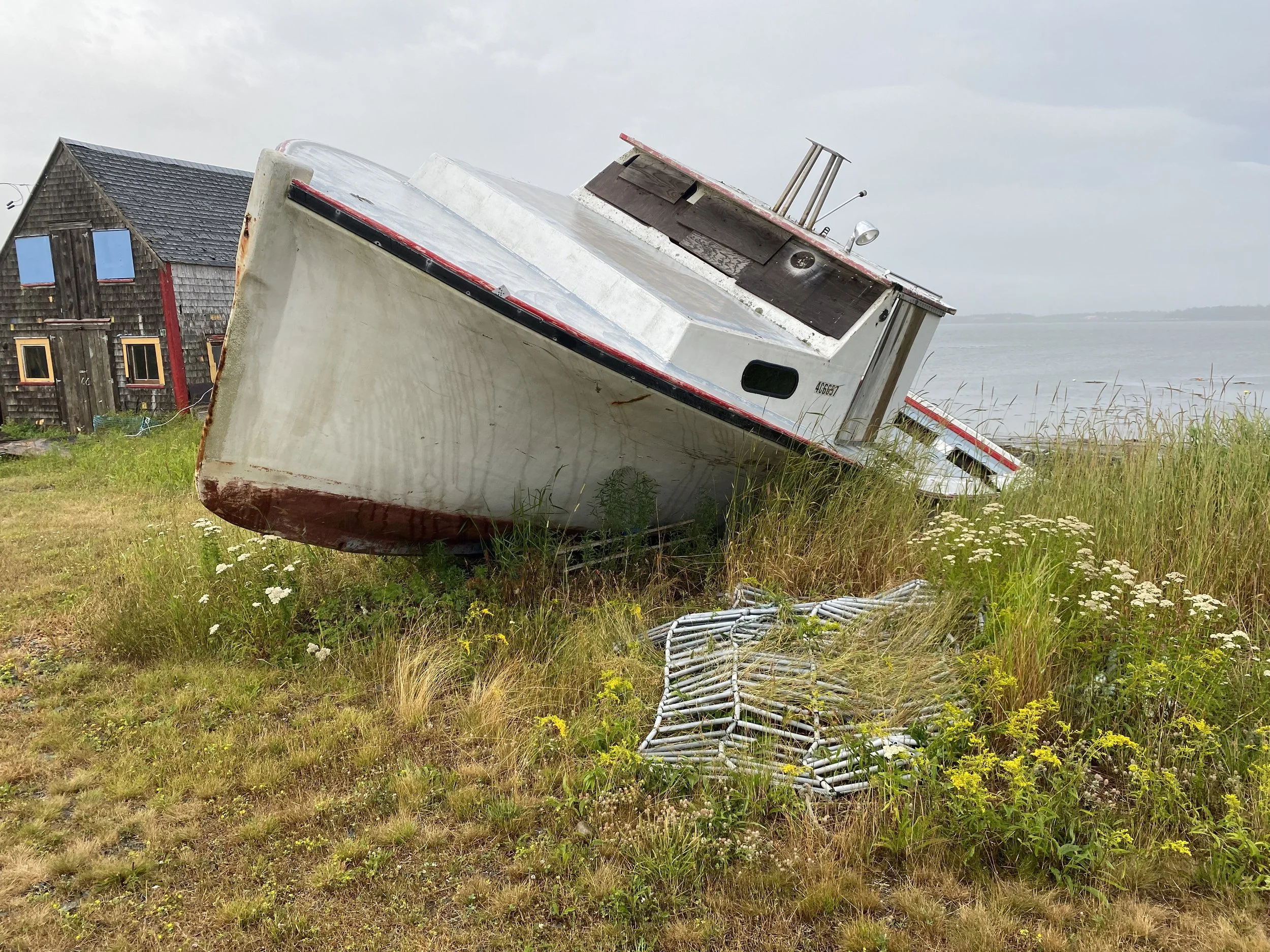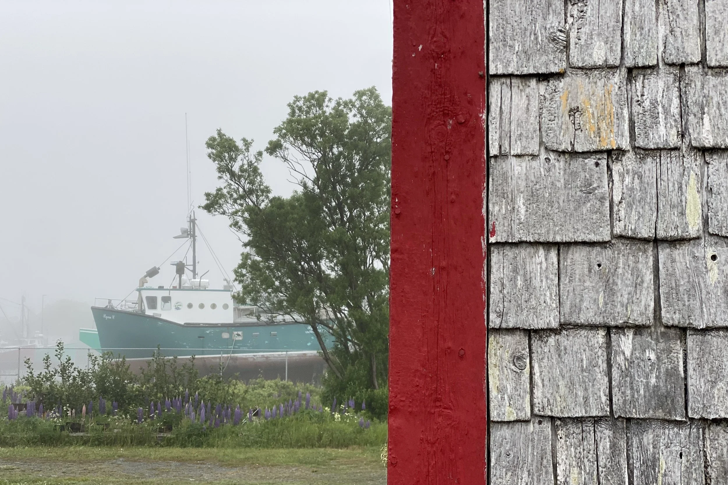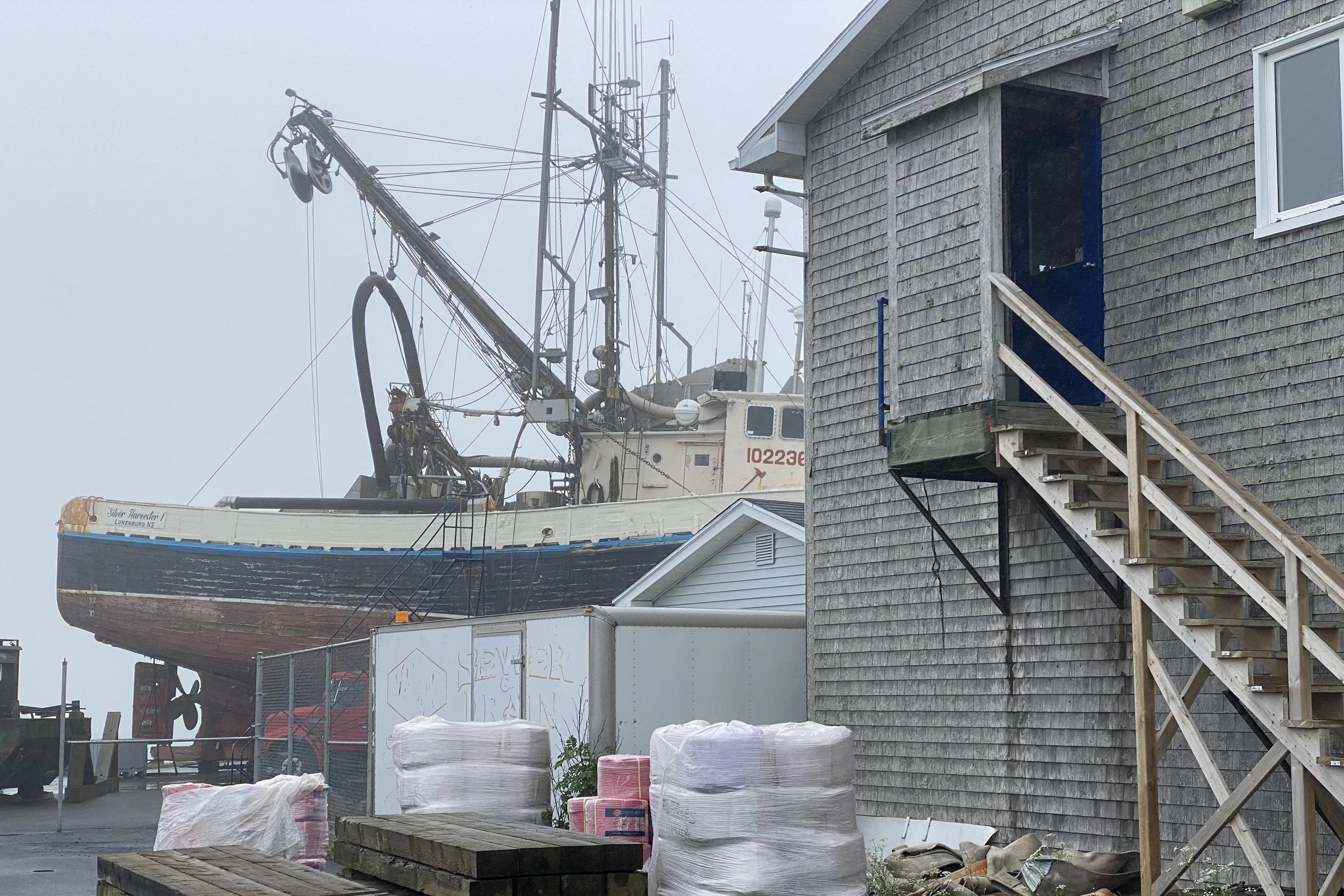 Eve wrote a children’s book while she was here. It’s about these two boats, Thumper and Fogseeker. Thumper is a big boastful commercial fishing boat who brings back wild fish to feed the people. He asked Fogseeker what he does to justify his existence, Fogseeker says he just looks for fog. Thumper has fun with that one until he gets lost in the fog only to be saved by Fogseeker. They then lie together at the what as best of friends.