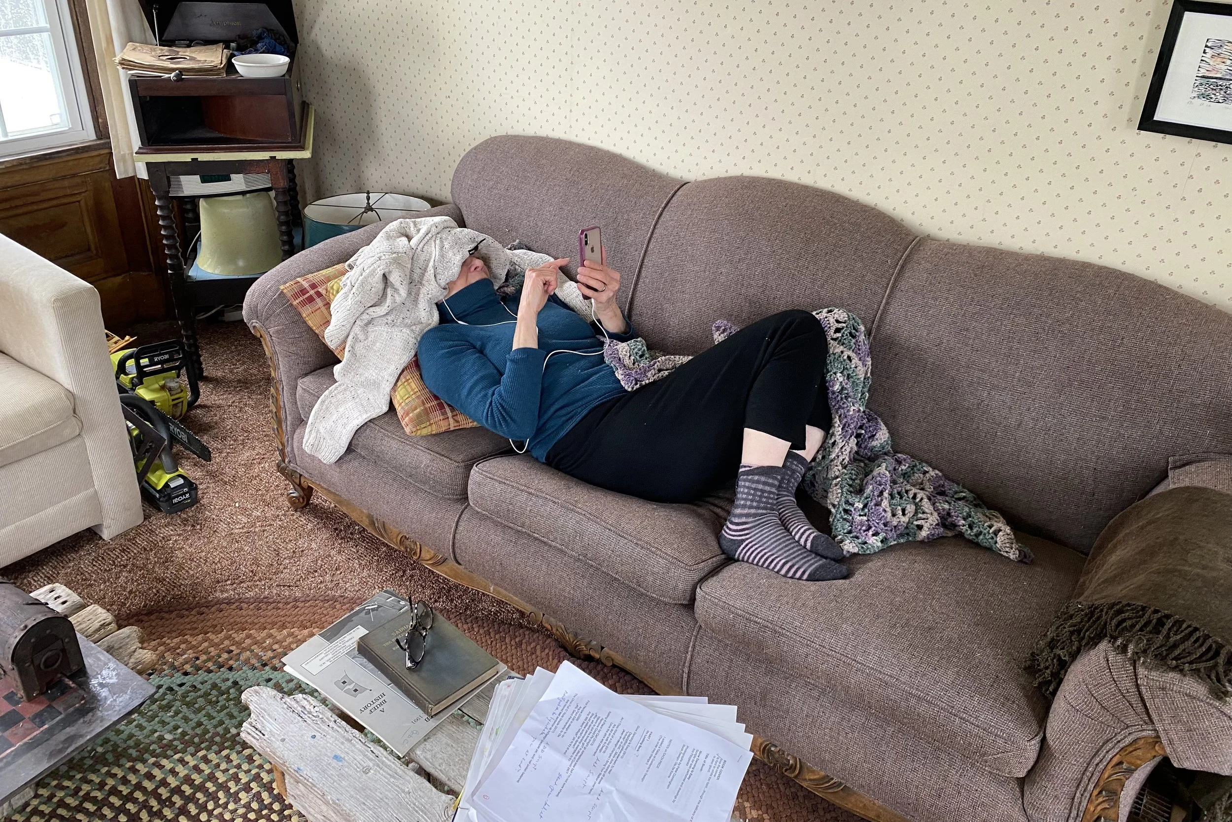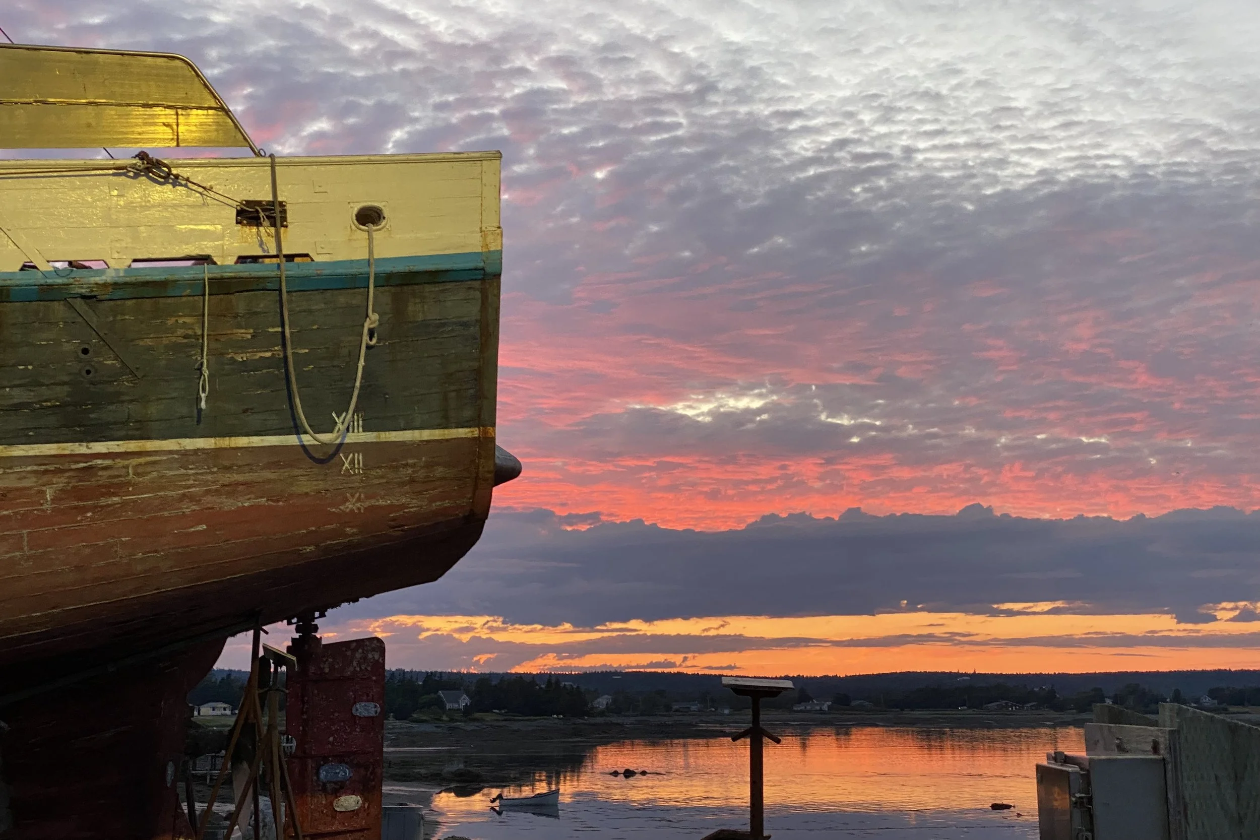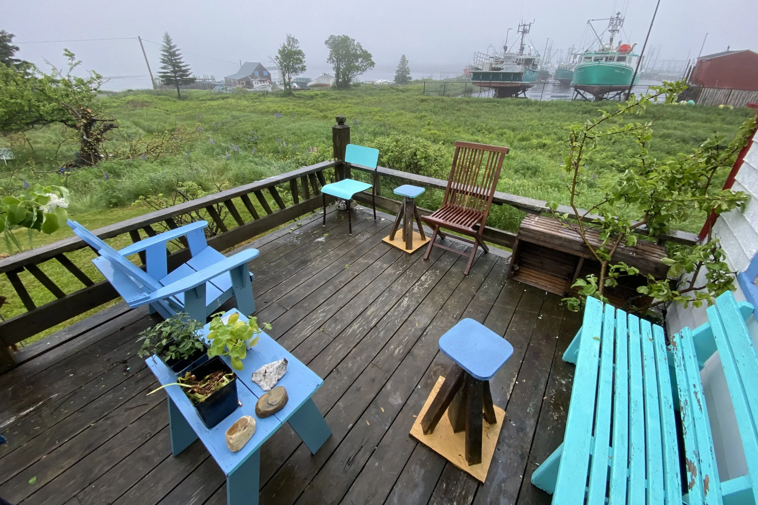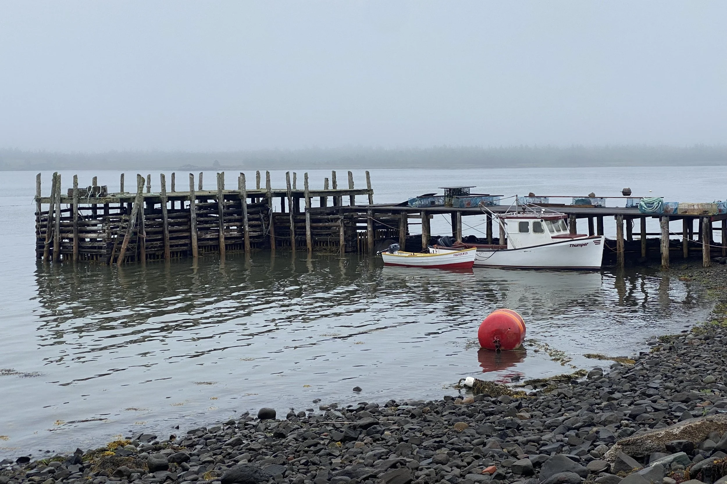 Eve wrote a children’s book while she was here. It’s about these two boats, Thumper and Fogseeker. Thumper is a big boastful commercial fishing boat who brings back wild fish to feed the people. He asked Fogseeker what he does to justify his existence, Fogseeker says he just looks for fog. Thumper has fun with that one until he gets lost in the fog only to be saved by Fogseeker. They then lie together at the what as best of friends.