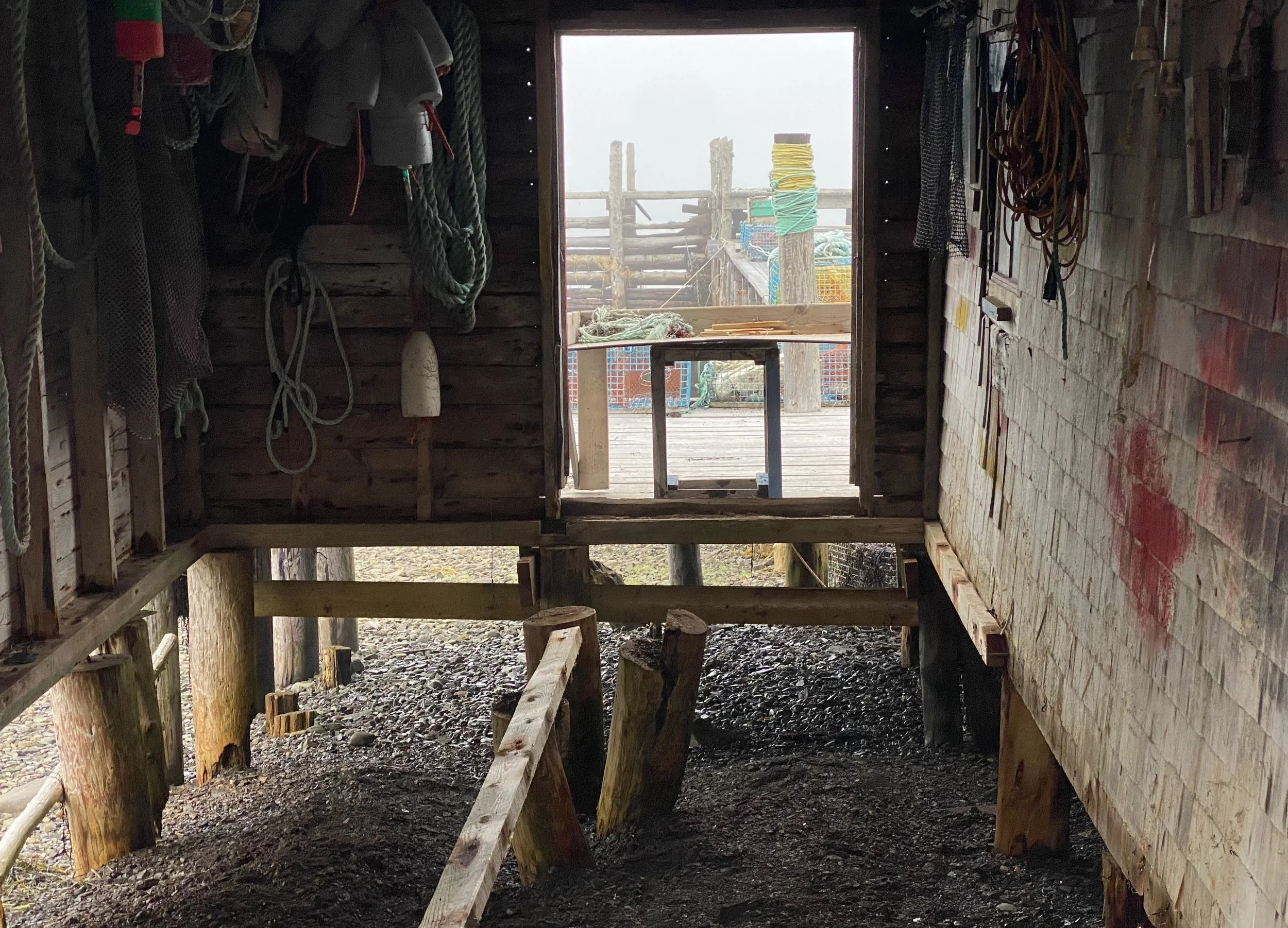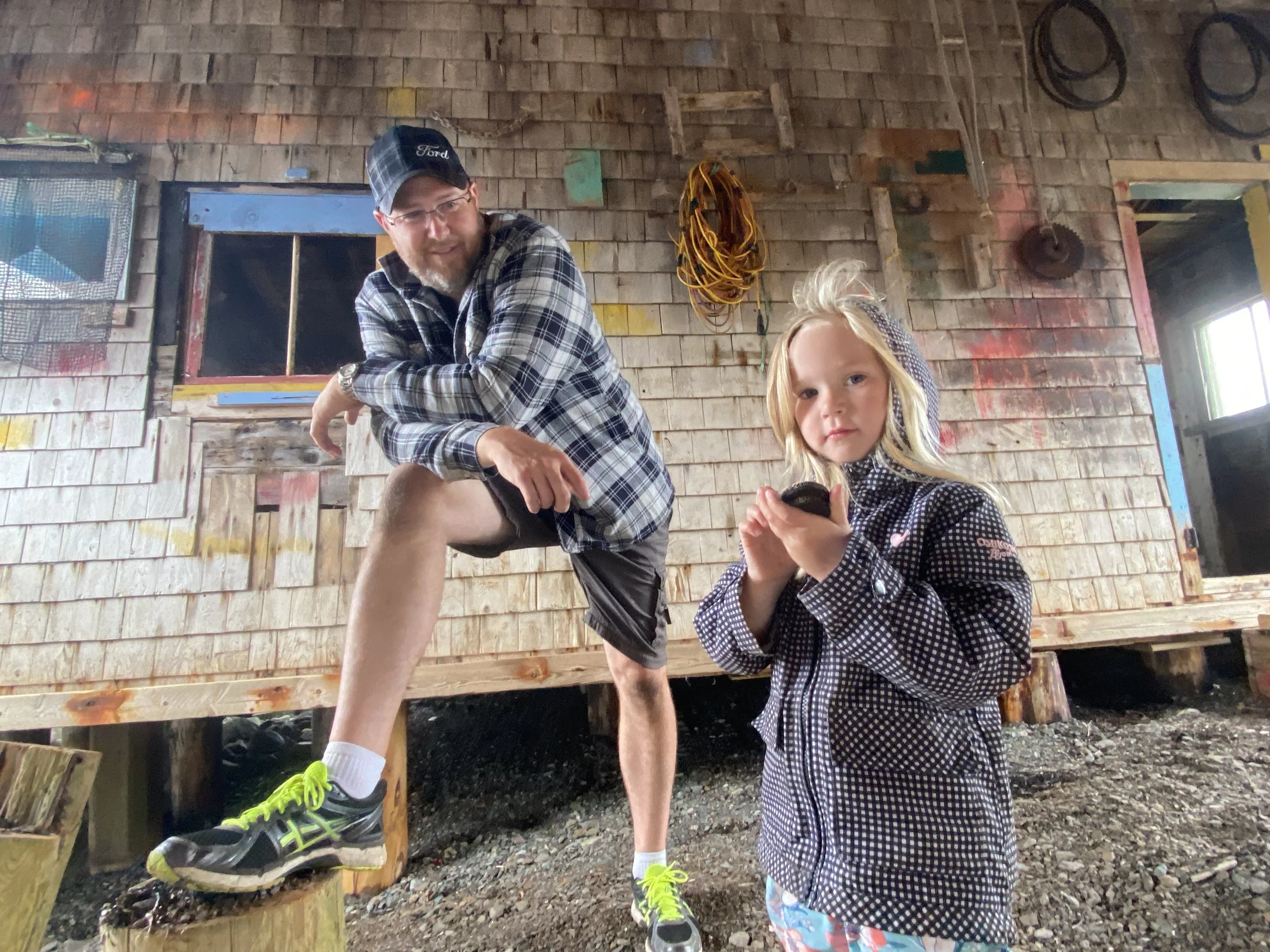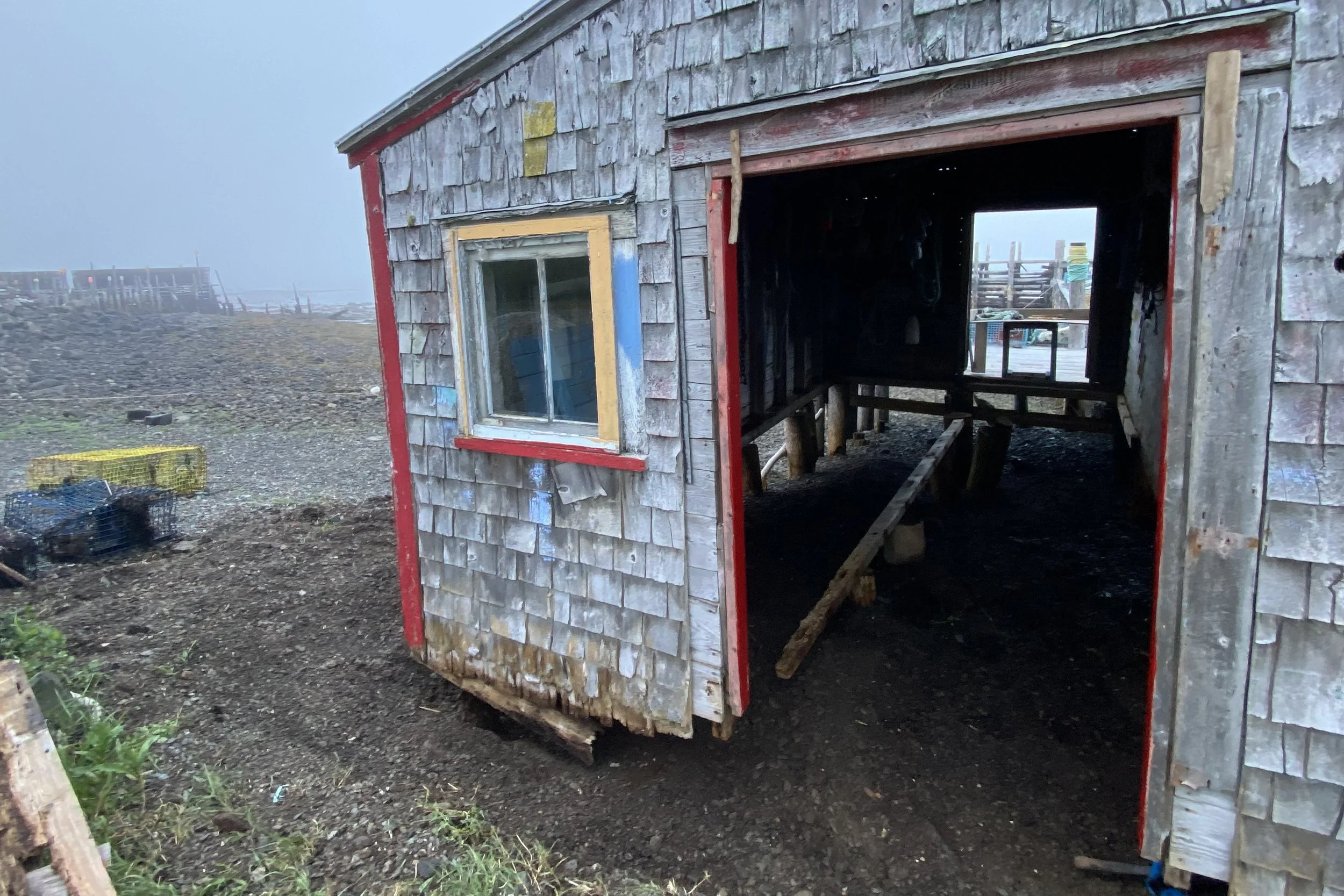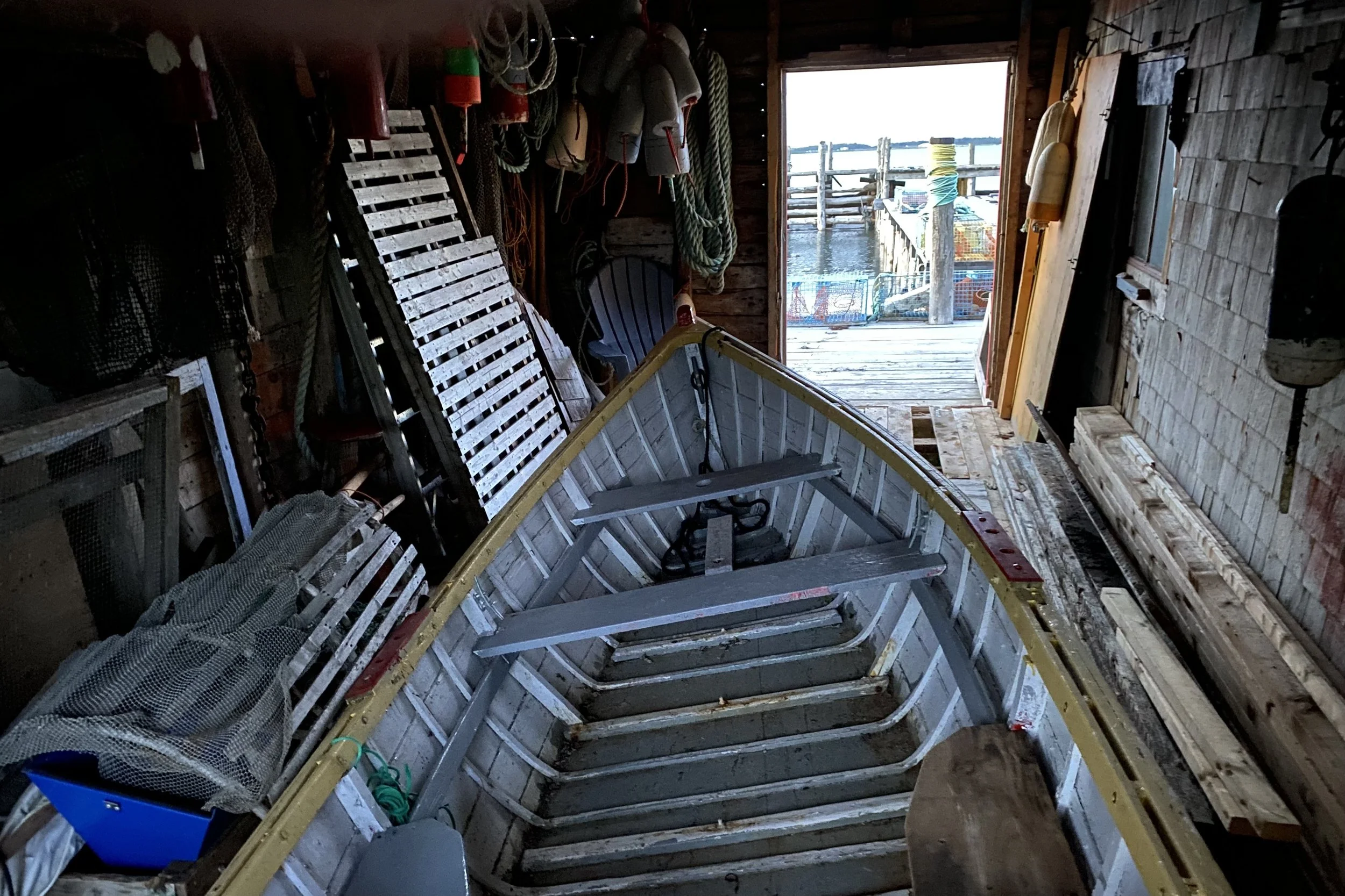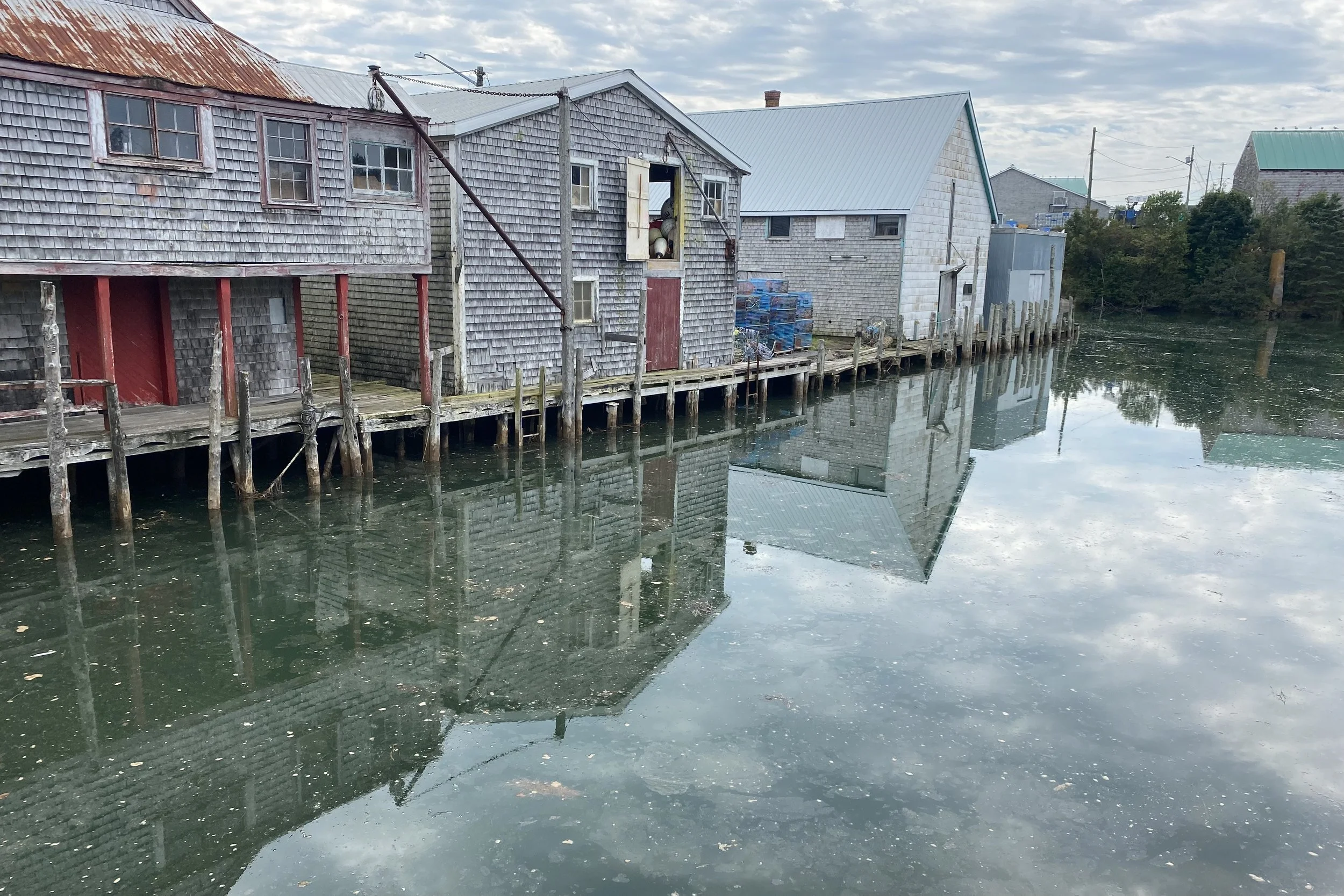 Examining the fine points of rigging traps with Lee and Carter on Brian Ingall's; wharf
