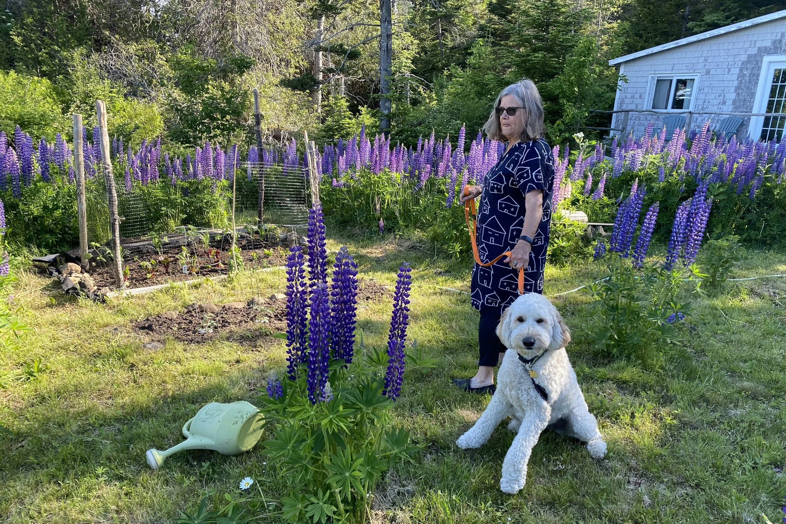 EVE MARKO visits with her dog AUSSI