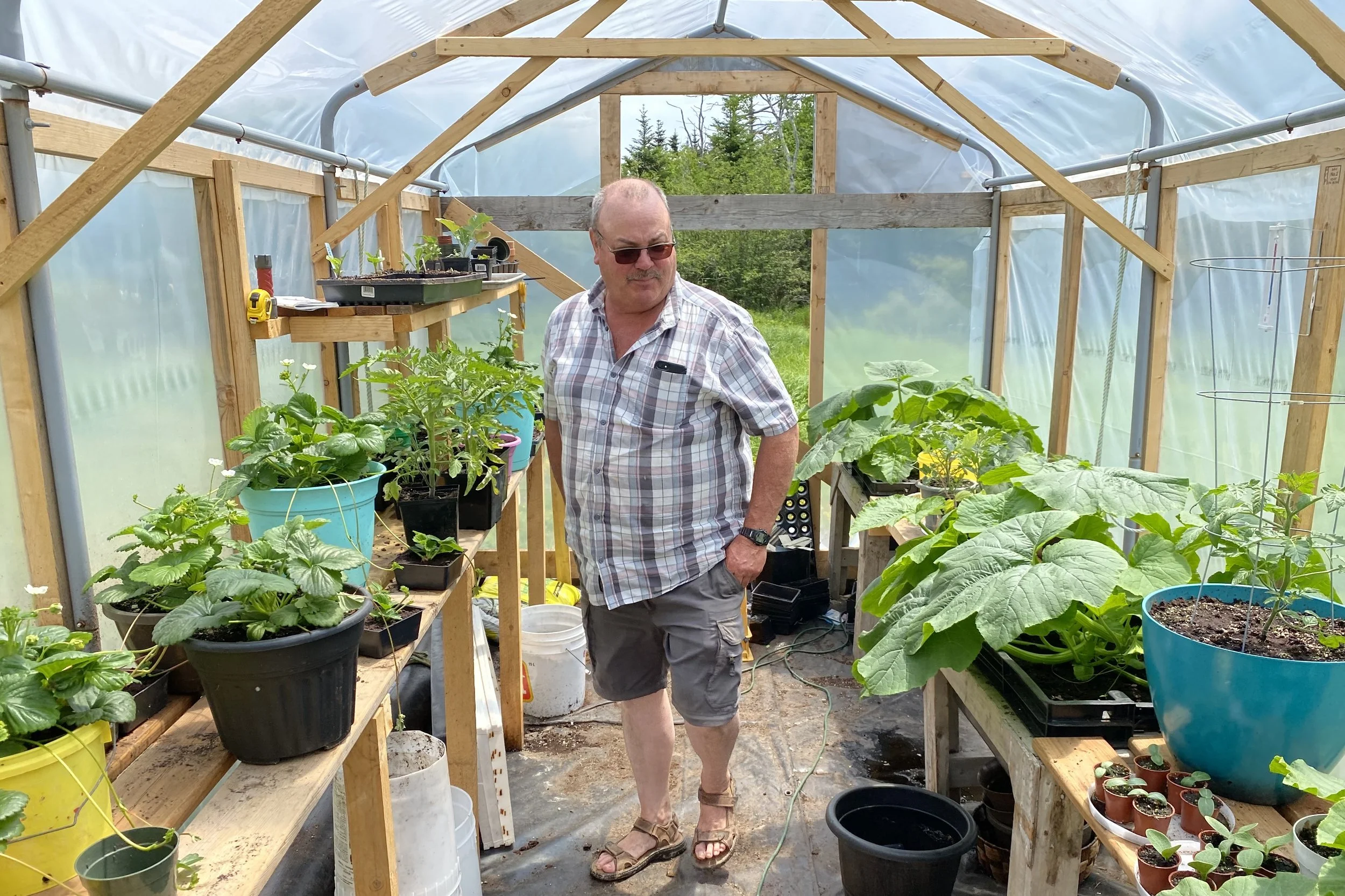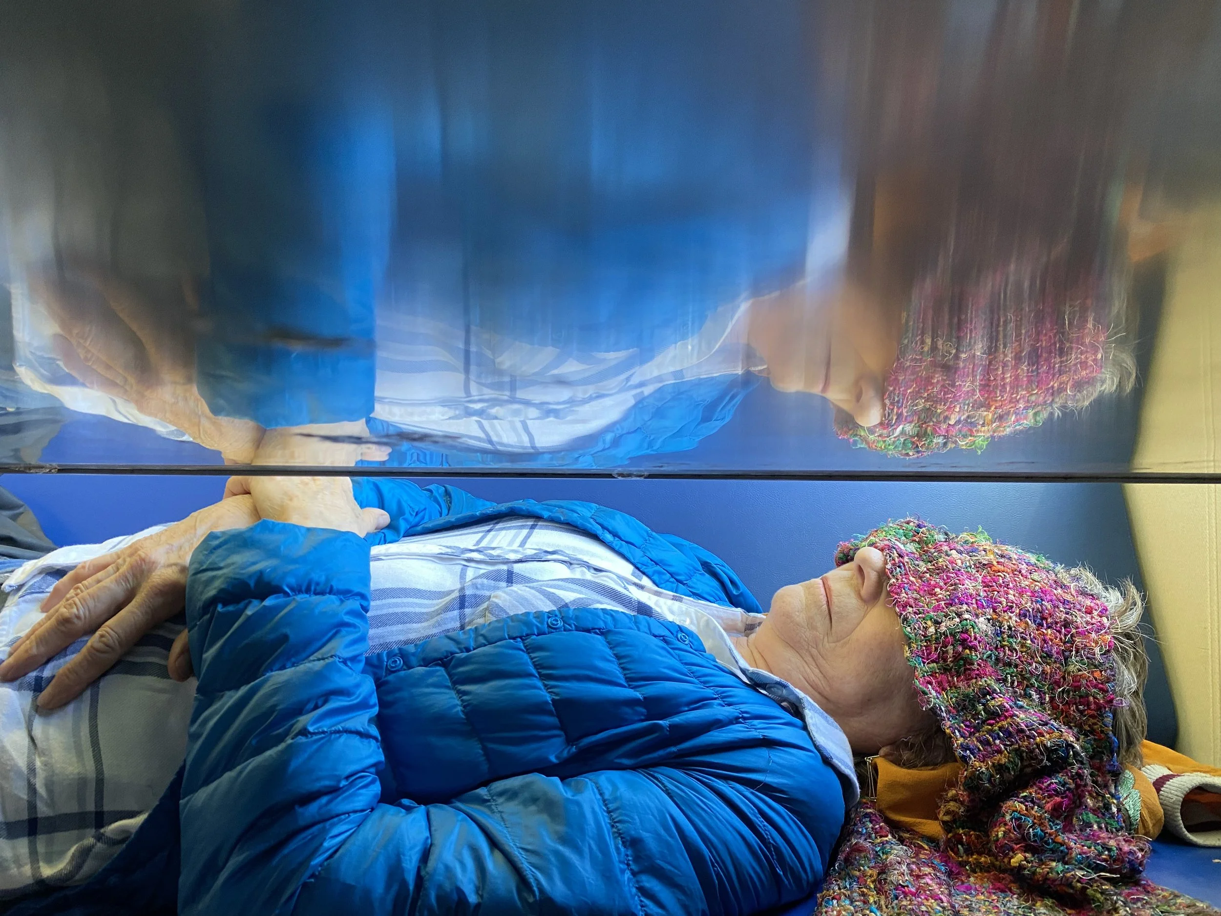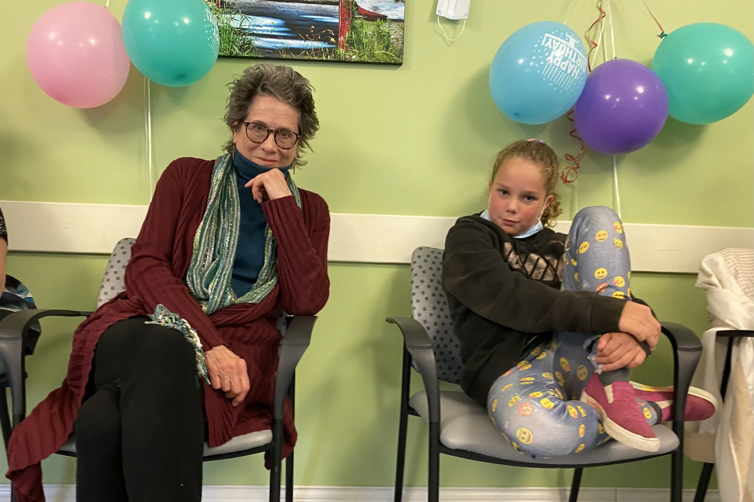 With Karen in Seal Cove making a Ukrainian flag mat.