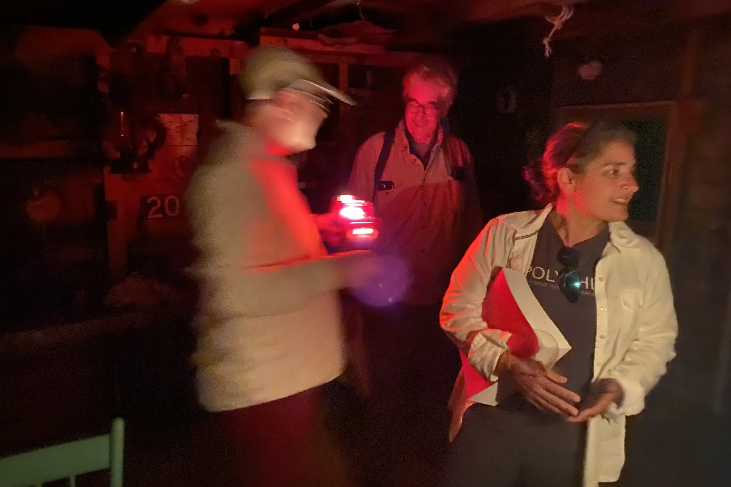 Discussing the modern rules of shipping dangerous cargo with Yvonne Keller in Seal Cove