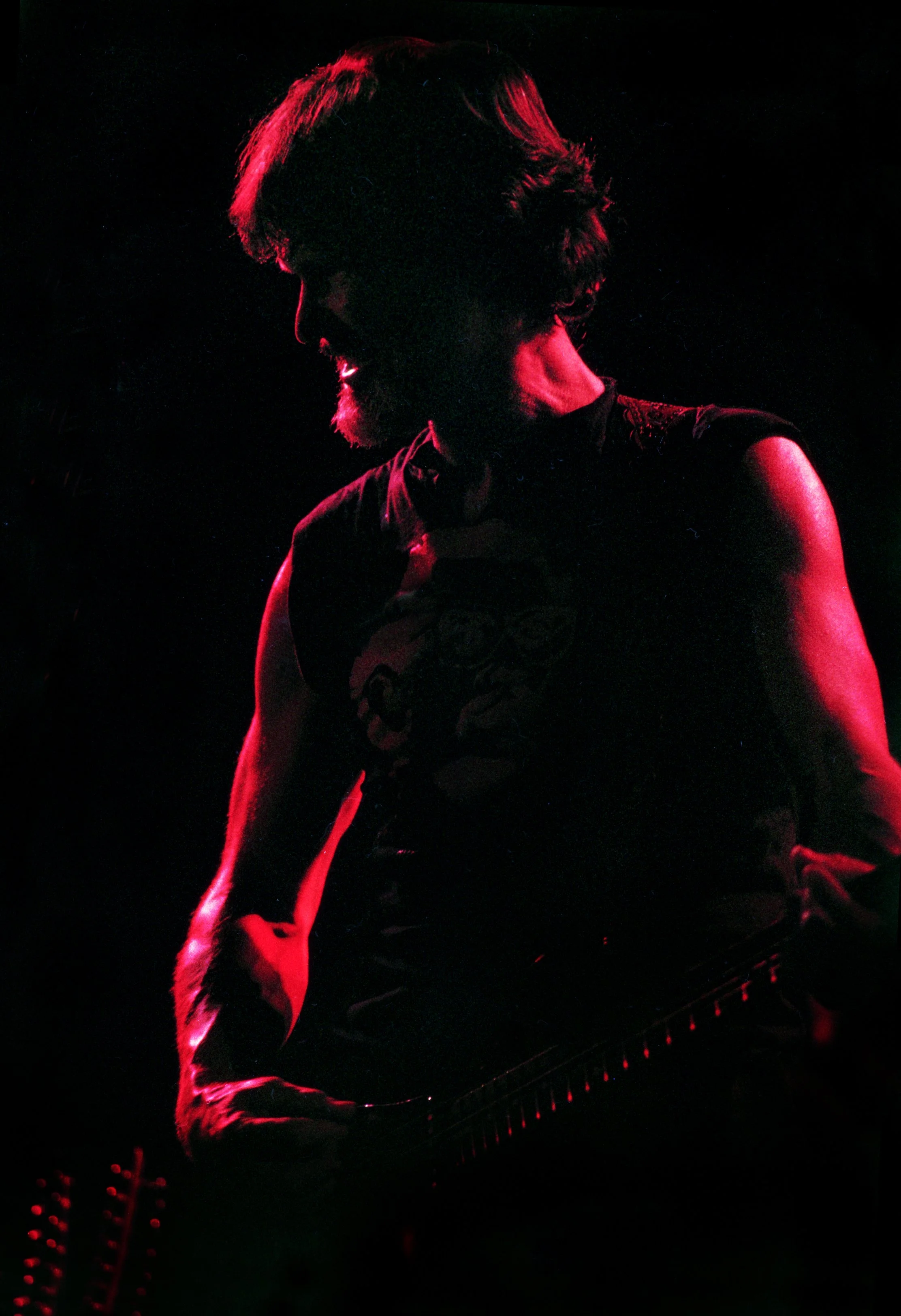 This collection ends in the early 1980’s when the bridge between performer and audience came to be mediated by a screen. I lost interest in photographing the subject when there was no longer any danger that my clothes would be soiled with the sweat of a live performer.