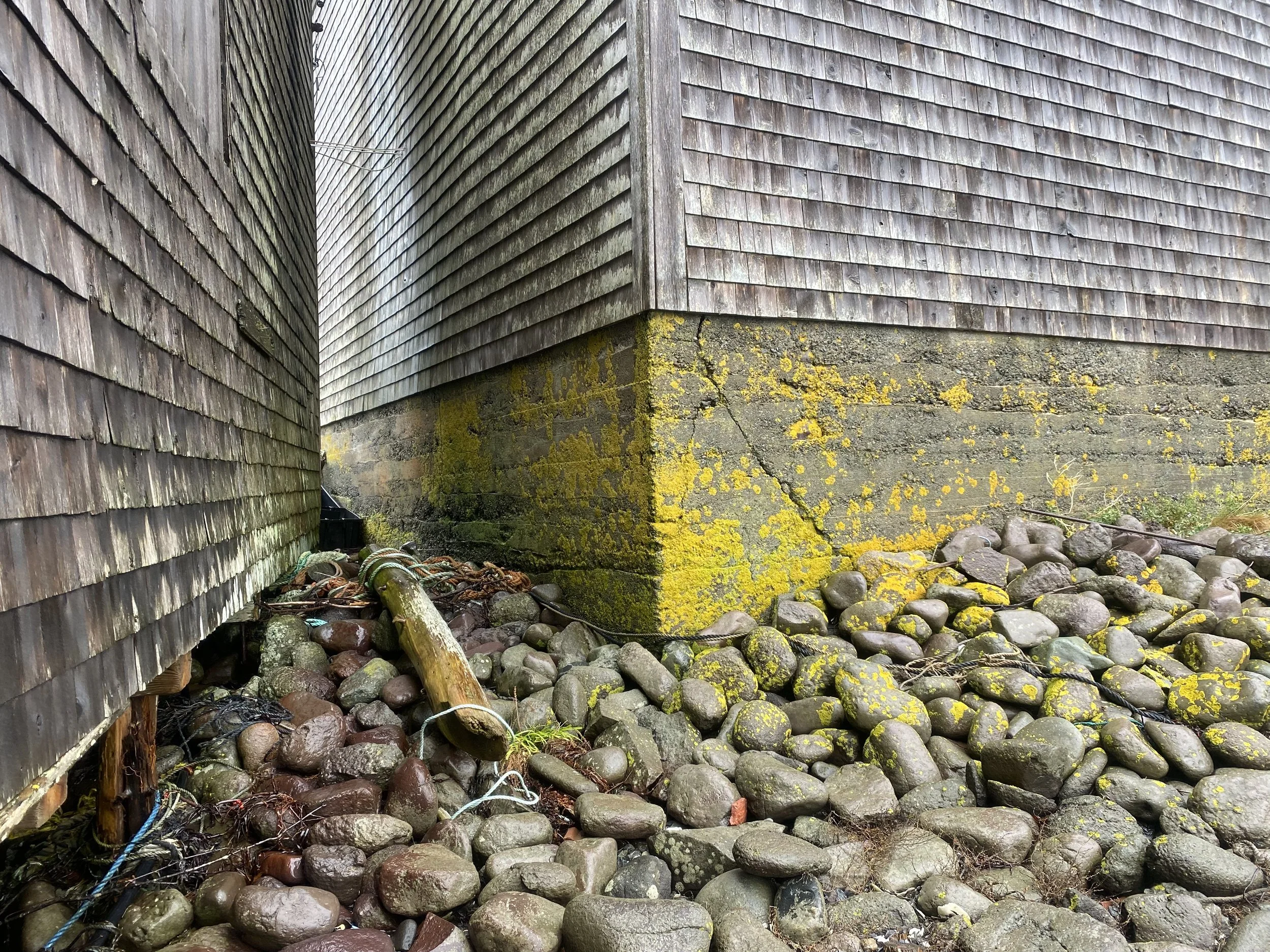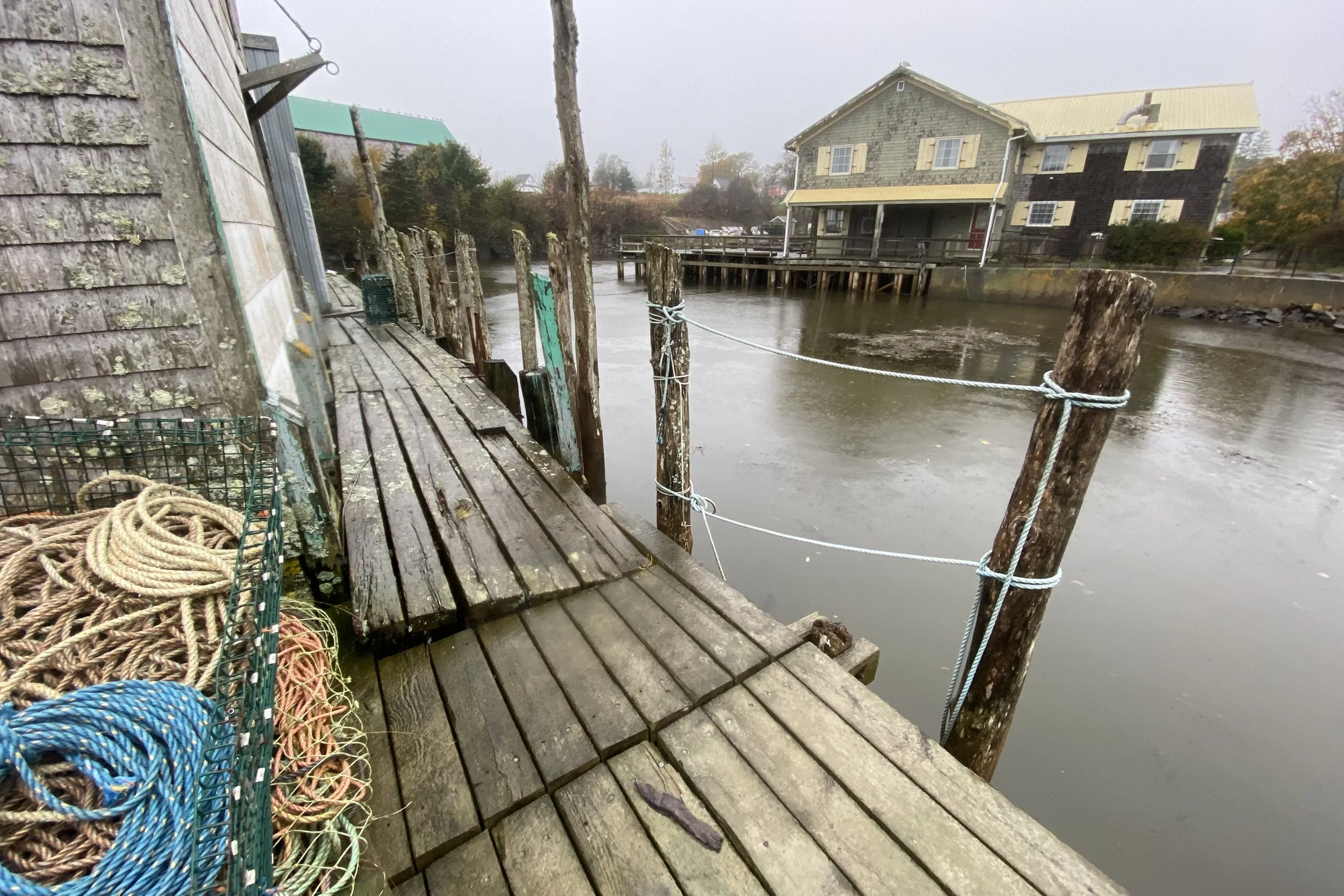 “Stringing sheds: their simple rectilinear massing, gable-roofed, wood framing and shingle-sheathing, the use of modest materials in an unfinished state, their placement along the waterfront, often on piers over the water.”